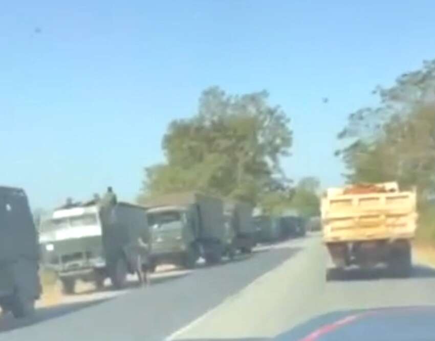 ဓာတ်ပုံ – ယမန်နေ့ မြ၀တီမြို့သို့ ဝင်ရောက်လာသည့် စစ်ကားတန်း။