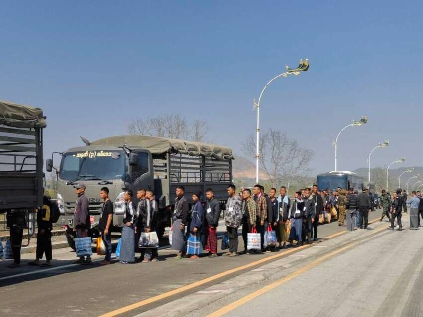 ဓာတ်ပုံ – ဇန်နဝါရီလ ၂၆ ရက်နေ့ ကရင်နီမှ ထွက်ပြေးလာသော စစ်သုံ့ပန်း ၆၈ ဦးကို ထိုင်းစစ်တပ်က မြန်မာစစ်တပ်ထံသို့ လွှဲပြောင်းနေစဉ်။