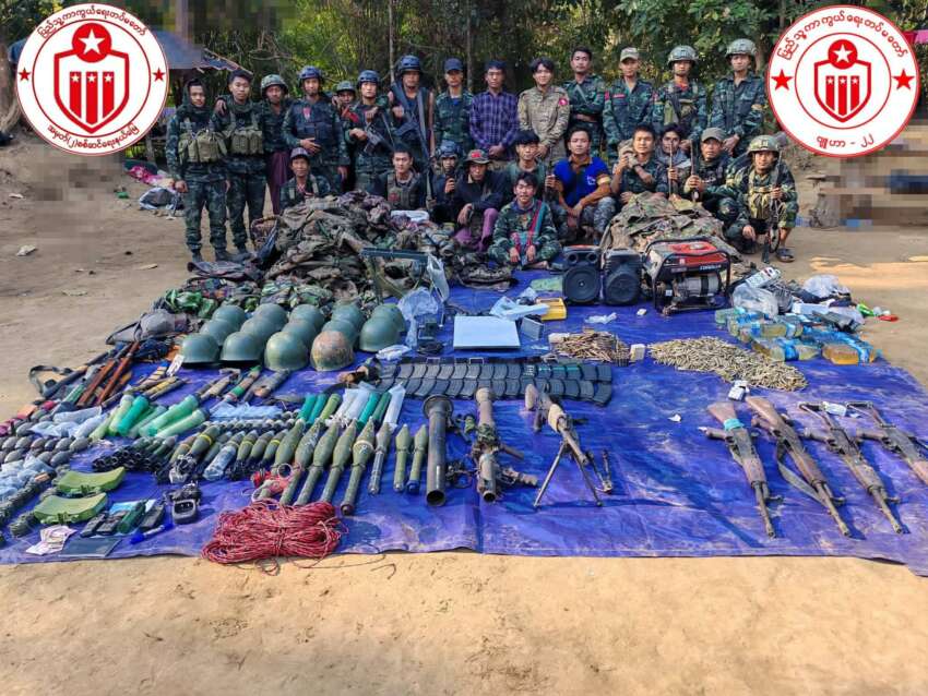 အကြမ်းဖက် စစ်တပ်ထံမှလည်း Ma2 သေနတ် ၁ လက်၊ Ma1 သေနတ် ၂ လက် ၊ Ma3 သေနတ် ၂ လက် ၊ RPG 7 ၁ လက်၊ 60 ကွန်မန်ဒို ၁ လက်၊ 5.56 ကျည်- ၃၀၀၀ တောင့်၊ 7.62 G3 ကျည် – ၅၈၀ တောင့် ၊ ကျည်ဘောက် – ၃၂ ခု၊ RPG အဖူး- ၈ ဖူး၊ RPG ပိုယမ်းတောင့် – ၇ တောင့်၊ 60 မမ အသီး ၈ လုံး၊ 40 မမ အသီး ၁၉ လုံး၊ အီနာဂါ ၁၉ လုံး၊ လက်ပစ်ဗုံး ၂၄ လုံး၊ 14မိုင်း- ၄၂ လုံး၊ ရှေ့ထွက်မိုင်း – ၂ လုံး ၊ စကားပြောစက်- ၁ လုံး၊ စတားလင့်ဘန်း – ၁ ခု ၊ မီတာဘုတ် – ၁ ခု ၊ မီးစက် – ၁ လုံး ၊ ဓါတ်ဆီဗူး- ၂၀ ဗူး ၊ ကီးပတ်ဖုန်း – ၄ လုံး၊ဖုန်း- ၁၁ လုံး ၊ ဓါး – ၁၉ ချောင်း၊ စစ်သုံးကျောပိုးအိတ်၊ ဦးထုတ် ၁၄ လုံး၊ စစ်ဝတ်စုံများစွာတို့ကို သိမ်းဆည်းရရှိခဲ့ကြောင်း သိရသည်။