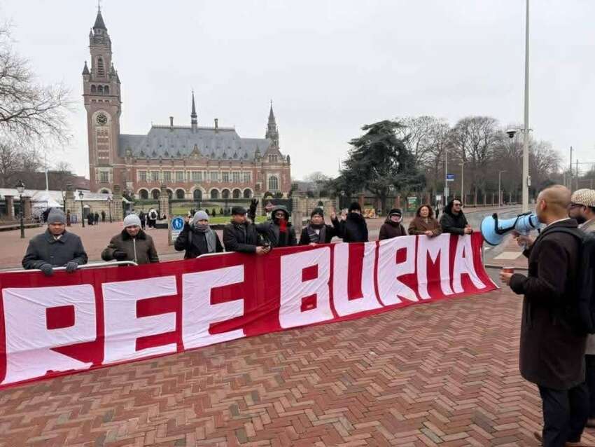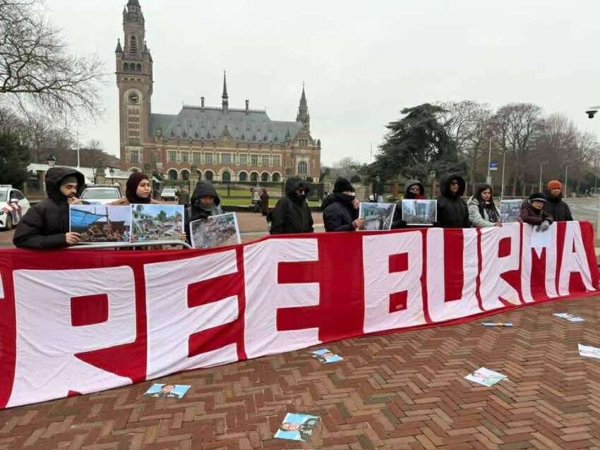 နယ်သာလန်နိုင်ငံရှိ နိုင်ငံတကာတရာရုံး (ICJ)ရုံးရှေ့တွင် မင်းအောင်လှိုင်စစ်အုပ်စု၏ မြန်မာနိုင်ငံတစ်ဝှမ်းစစ်ရာဇ၀တ်မှုများ ကျူးလွန်သည်ကို အရေးယူပေးရန် မြန်မာတိုင်းရင်းသားများ စုပေါင်း ဆန္ဒဖော်ထုတ်ခဲ့ကြကြောင်း သိရှိရသည်။