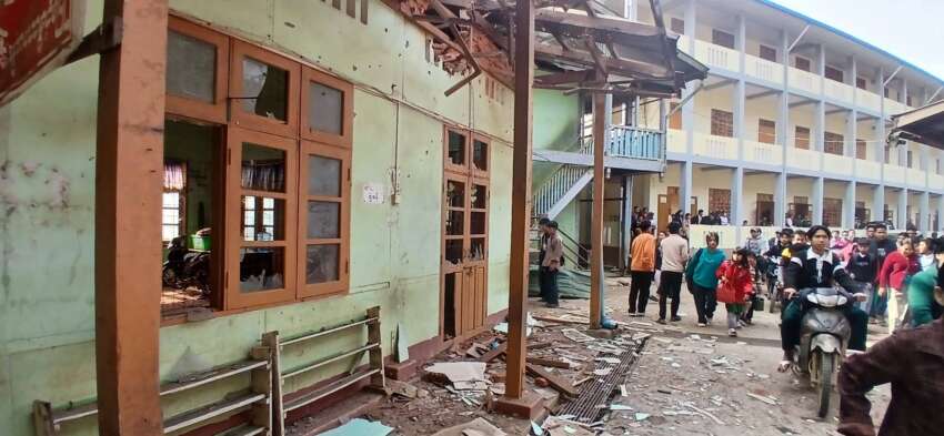 “ဖားကန့်မြို့အထကကျောင်းကြီးပေါ့၊ အထကကျောင်းကြီးက ဒီတစ်ကျောင်းပဲရှိတယ်။ ကျန်တဲ့ ရပ် ကွက်တွေထဲမှာတော့ ထခွဲတွေတော့ရှိတာပေါ့။ ဖားကန့်ဗျူဟာကုန်းနဲ့ ရဲစခန်းကြားထဲမှာရှိတယ်။ ကျောင်းကြီးရဲ့ ဧရိယာက မြို့မရပ်ကွက်နှင့်ငှက်ပျောတောရပ်ကွက်အစပ်ပေါ့၊ မြို့မရပ်ကွက်ထဲ လည်း တစ်ခြမ်းပါတယ်။ ငှက်ပျောတောရပ်ကွက်ထဲလည်းတစ်ခြမ်းပါတယ်။ အဲဒီကျောင်းကြီးထဲက KG ဆောင်ပေါ်ကျတာ။ KG ဆောင်က ကျောင်းပိတ်ထားတယ်။ အဲဒီကျောင်းနောက်ဘက်ကို အပေါ့၊ အလေးသွားတဲ့ ၁၀ နှစ်အရွယ် ကျောင်းသားတစ်ဦးနဲ့ ကျောင်းသူတစ်ဦးထိတယ်၊ ဆေးကုသမှုတော့ ပေးထားပြီလို့ သိရတယ်။” ဟု ဖားကန့်သတင်းရင်းမြစ်က ရန်ကုန်ခေတ်သစ်သတင်း ဌာနထံသို့ ပြောကြားသည်။