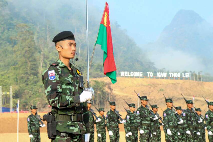 This handout from the Karen National Union (KNU) taken on January 31, 2019 and received on April 4, 2021 shows soldiers taking part in a parade for the 70th anniversary of the Karen revolution at a remote base on the Thai-Myanmar border, as ten of Myanmar’s major rebel groups including the KNU threw their support behind the country’s anti-coup movement. (Photo by Handout / KAREN NATIONAL UNION (KNU) / AFP) / —–EDITORS NOTE — RESTRICTED TO EDITORIAL USE – MANDATORY CREDIT “AFP PHOTO / KAREN NATIONAL UNI