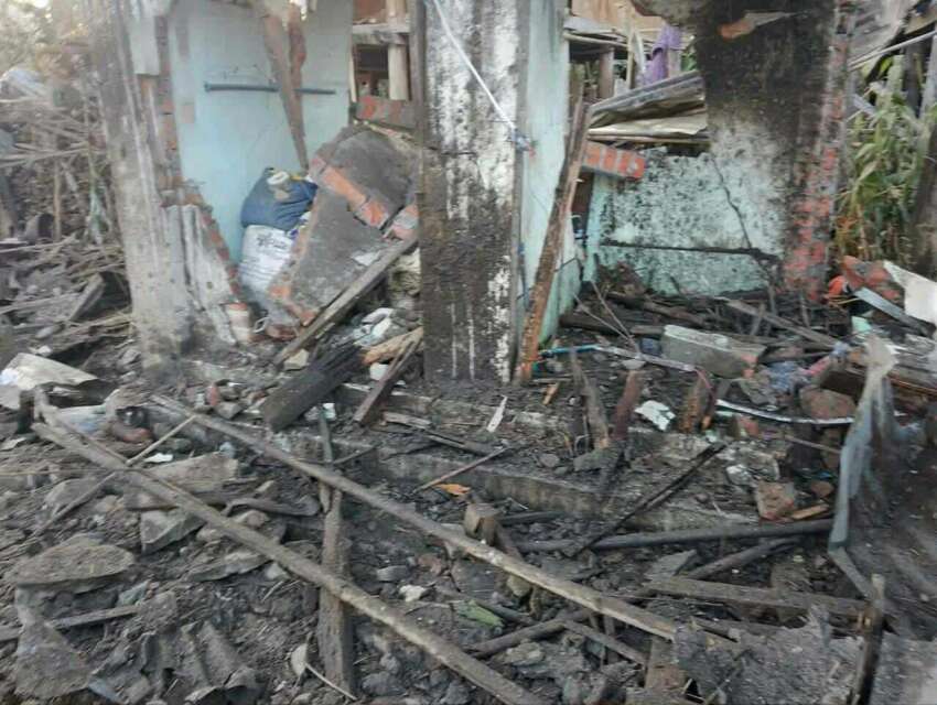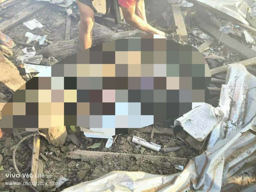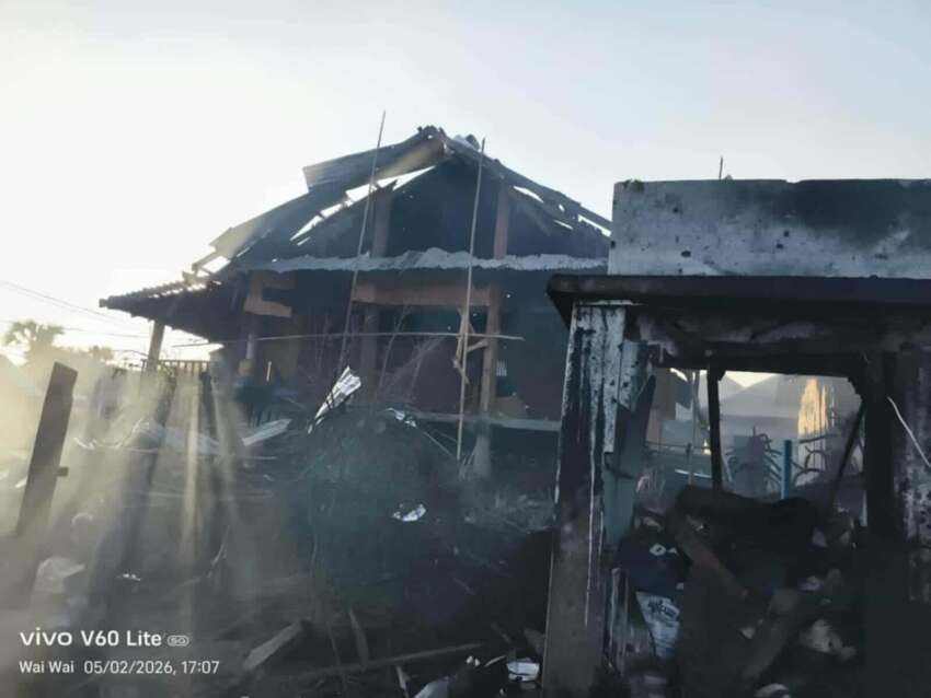 ဓာတ်ပုံ – စစ်တပ်က လေယာဉ်ဖြင့် ဗုံးကျဲတိုက်ခိုက်မှုကြောင့် ပျက်စီးသွားသော မိအယ်ကျေးရွာမှ နေအိမ်များ။