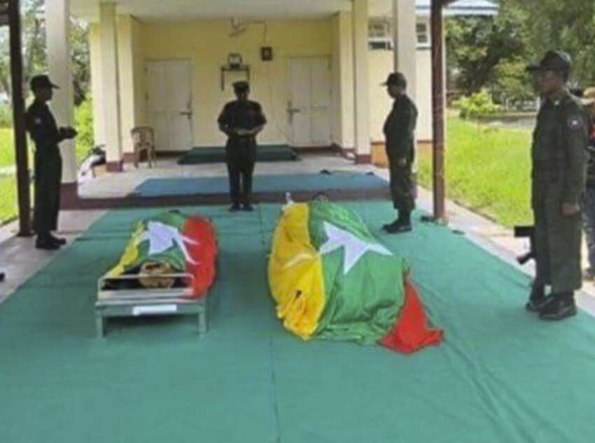 ဓာတ်ပုံ- စစ်တပ်လက်အောက်ခံ စစ်မှုထမ်း ပြည်သူ့စစ်တချို့၏ နာရေး အသုဘ ချမှု မြင်ကွင်း။ (ပုံအဟောင်းကို အသုံးပြုထားပါသည်။)