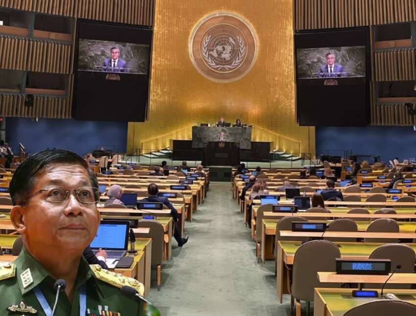ကုလသမဂ္ဂနှင့်လက်အောက်ခံအဖွဲ့များက မြန်မာစစ်တပ်ကို အသိအမှတ်မပြုဘဲ မြန်မာအမြဲတမ်းကိုယ်စား လှယ် (သံအမတ်ကြီး ဦးကျော်မိုးထွန်း)ကလည်း သစ္စာဖောက်သွား၍ အထွေထွေညီလာခံနိုင်ငံရေးစင်မြင့်တွင် ပြော ရေးဆိုခွင့်ဆုံးရှုံးနေရကြောင်း အကြမ်းဖက် မင်းအောင်လှိုင်က ထုတ်ပြောပြောဆိုသည်။