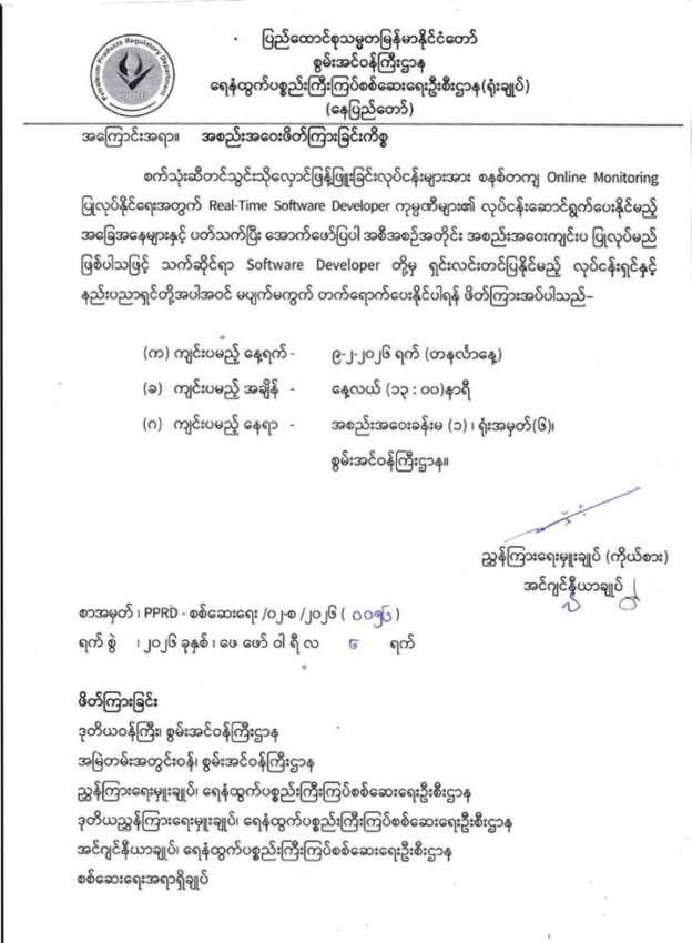 ယနေ့ ဖေဖော်ဝါရီလ ၉ ရက်နေ့ နေပြည်တော်တွင် စွမ်းအင်ဝန်ကြီးဌာန၊ ရေနံထွက်ပစ္စည်းကြီးကြပ်စစ်ဆေးရေးဦးစီးဌာန က Real-Time Software မဖြစ်မနေ စက်သုံးဆီဆိုင်များတွင် တပ်ဆင်ရန် စက်သုံးဆီ- MPTA အသင်းနှင့် နည်းပညာကုမ္ပဏီများကို အစည်းအဝေး ခေါ်ယူကျင်းပခဲ့ပြီး ဆီဆိုင်များတွင် Online Monitoring ပြုလုပ်နိုင်မည့် Software များ တပ်ဆင်ရေးအတွက် ကုမ္ပဏီများက ရှင်းလင်းတင်ပြခဲ့ကြောင်း သိရှိရသည်။