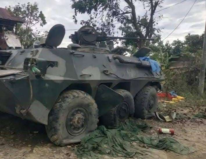 ဓာတ်ပုံ- KIA က ယခင်ဖျက်ဆီးနိုင်ခဲ့သော တင့်ကားများနှင့် ဗန်းမော်မှ စစ်တပ်၏ တင့်ကား ၁ စီး။