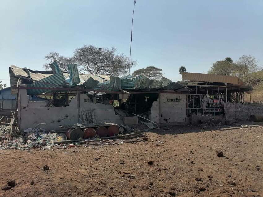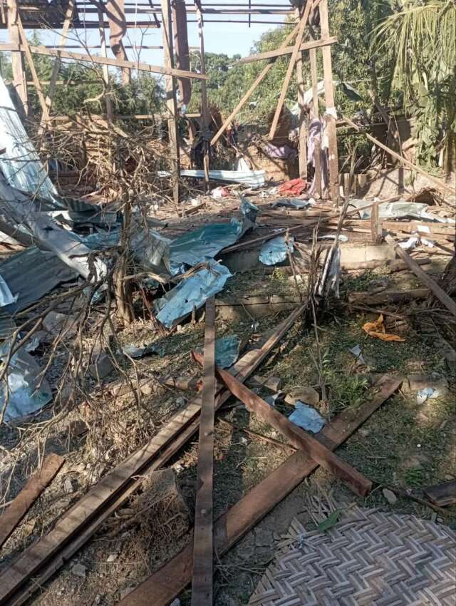 အလားတူ ယနေ့ နံနက် ၁၁ နာရီကျော်အချိန် မကွေးတိုင်း၊ မြိုင်မြို့နယ်မြောက်ခြမ်းရှိ မြင့်စိုင်းကုန်းလမ်းဆုံတွင် ဖွင့်လှစ်ထားသော ကုန်မာဆိုင်တစ်ဆိုင်ကိုလည်း စစ်တပ်က လေကြောင်းမှတစ်ဆင့် ဗုံးကျဲတိုက်ခိုက်ခဲ့ကြောင်း သိရှိရသည်။