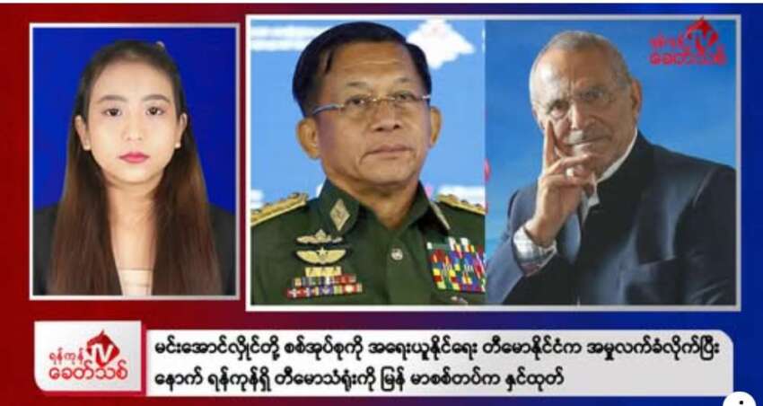 အကြမ်းဖက် မင်းအောင်လှိုင်နှင့် စစ်တပ်တို့ ကျူးလွန်တဲ့ စစ်ရာဇဝတ်မှုတွေကို အရေးယူနိုင်ဖို့ တီမောနိုင်ငံက ဥပဒေကြောင်းအရ စုံစမ်းစစ်ဆေးဖို့ကို အမှုလက်ခံလိုက်ပြီးတဲ့နောက် ရန်ကုန်မှာရှိတဲ့ တီမောသံရုံးကို မြန်မာစစ်တပ်က ၇ ရက်အတွင်း ထွက်ခွာဖို့ နှင်ထုတ်လိုက်တယ်လို့ မနေ့က ညပိုင်း ကြေညာလိုက်ပါတယ်။