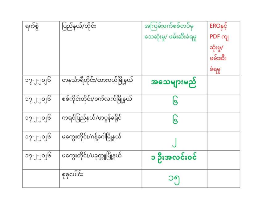ရန်ကုန်ခေတ်သစ်အနေဖြင့် နေ့စဉ် စစ်သား သေဆုံးမှု စာရင်းများကို ထုတ်ပြန် ရာတွင် ဒေသကာ ကွယ်ရေးတပ်ဖွဲ့များ၏ ထုတ်ပြန်ချက်များနှင့် ပြောဆိုချက် များကို စုစည်းဖော် ပြရခြင်းဖြစ်ပြီး မြေ ပြင် အခြေအနေတွင် အမှန်တကယ် စစ်သားများ သေဆုံးမှု ရှိ၊ မရှိ ကွင်းဆင်း အတည်ပြုနိုင်ခြင်း မရှိသည်ကို သိစေအပ်ပါသည်။