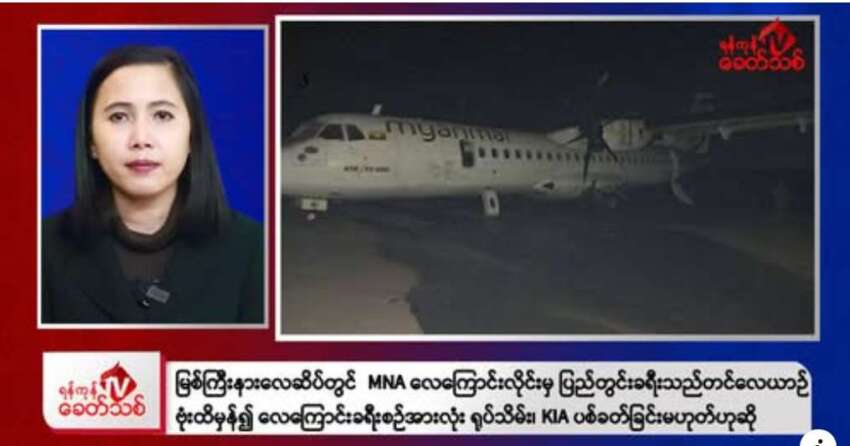-ကချင်ပြည်နယ်၊ မြစ်ကြီးနားလေဆိပ်မှာ မြန်မာအမျိုးသားလေကြောင်းလိုင်း-MNA က ပြည်တွင်း ခရီးသည် တင်လေယာဉ်ရဲ့ ခေါင်းပိုင်း၊ ကိုယ်ထည်အလယ်ပိုင်းနဲ့ အမြီးပိုင်းတို့မှာ ဗုံးထိမှန်ကာ လေကြောင်းခရီးစဉ်အားလုံး ရုပ်သိမ်းလိုက်ကြောင်း မြစ်ကြီးနားအခြေစိုက် လေယာဉ်လက်မှတ် အရောင်းကိုယ်စားလှယ်တွေက ရန်ကုန်ခေတ်သစ်ကို ပြောပါတယ်။