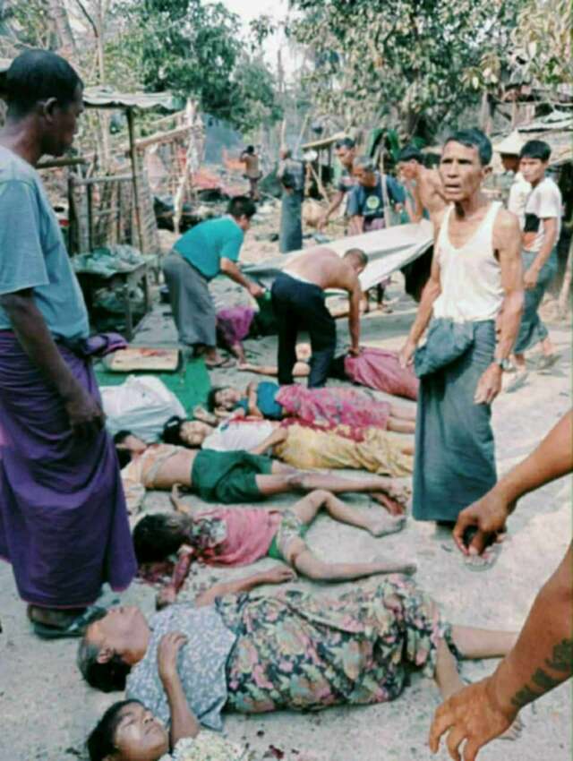 အကြမ်းဖက် စစ်တပ်၏ ဗုံးကျဲ တိုက်ခိုက်မှုအတွင်း ကလေးငယ်များ အပါ အဝင် ပြည်သူ ၁၁ ဦးသေဆုံးခဲ့ပြီး ၁၀ ဦး ထိခိုက်ဒဏ်ရာရရှိခဲ့ကြောင်း၊ ထို့အ ပြင် ဈေးလည်းမီးလောင်သွားပြီး နေအိမ်၊ အဆောက်အအုံများလည်း ဆုံးရှုံးမှုများပြားခဲ့ကြောင်း သိရှိရသည်။