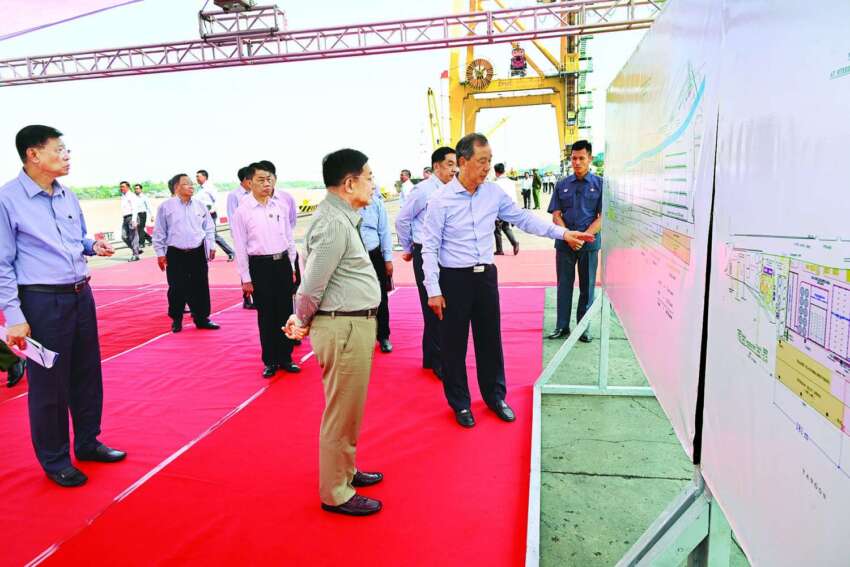 ဓာတ်ပုံ- ရန်ကုန်မြို့ရှိ ဆိပ်ကမ်းများကို သွားရောက် ကြည့်ရှုနေသော အကြမ်းဖက် မင်းအောင်လှိုင်။ (ပုံအဟောင်းကို အသုံးပြုထားပါသည်။)