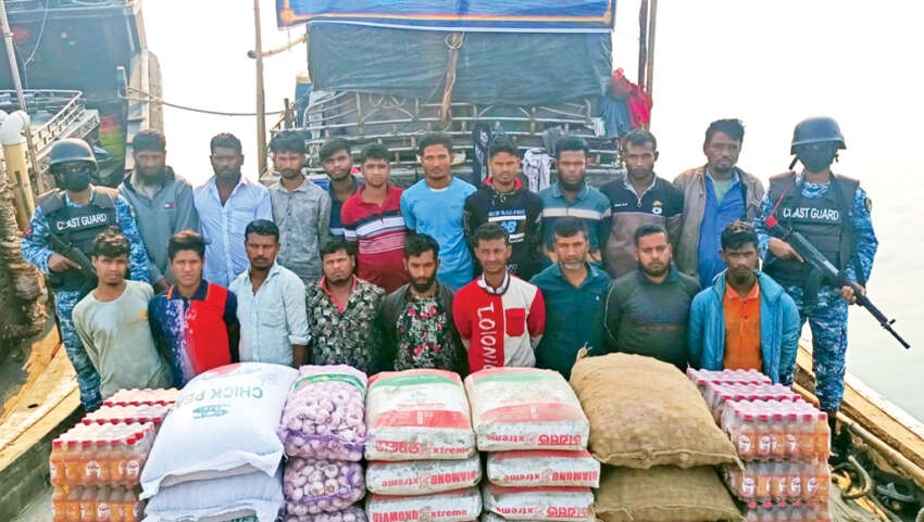 ရခိုင်ပြည်သို့ ဘိလပ်မြေနှင့် လူသုံးကုန်ပစ္စည်းများ မှောင်ခိုတင်ပို့သည့် လူ ၁၉ ဦးကို ဘင်္ဂလားဒေ့ရှ် ကမ်းခြေစောင့်တပ်ဖွဲ့ ဖမ်းဆီး