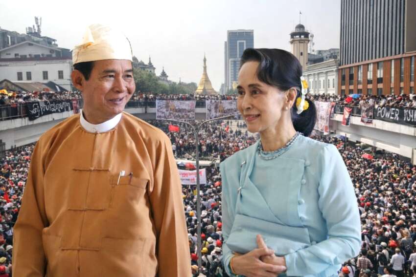 ဒေါ်အောင်ဆန်းစုကြည်ကို အကြမ်းဖက်စစ်တပ်က အဂတိလိုက်စားမှု တိုက်ဖျက်ရေး ဥပဒေပုဒ်မ ၅၅၊သဘာဝ ဘေးအန္တရာယ် စီမံခန့်ခွဲမှု ဥပဒေ ပုဒ်မ ၂၅ အမှု၂ခု၊ပို့ကုန် သွင်းကုန် ဥပဒေ ပုဒ်မ ၈၊ဆက်သွယ်ရေး ဥပဒေပုဒ်မ ၆၇၊ နိုင်ငံတော် အကြည်အညို ပျက်စေမှု ပုဒ်မ ၅၀၅ (ခ)၊ နိုင်ငံတော်လျှို့ဝှက်ချက်အက်ဥပဒေ ပုဒ်မ ၃ (၁) (ဂ) စသည့် ပုဒ်မများစွာဖြင့် အမှု ၁၉ မှုအတွက် ထောင်ဒဏ် ၃၃ နှစ်ကျော် ချမှတ်ထားသည်။