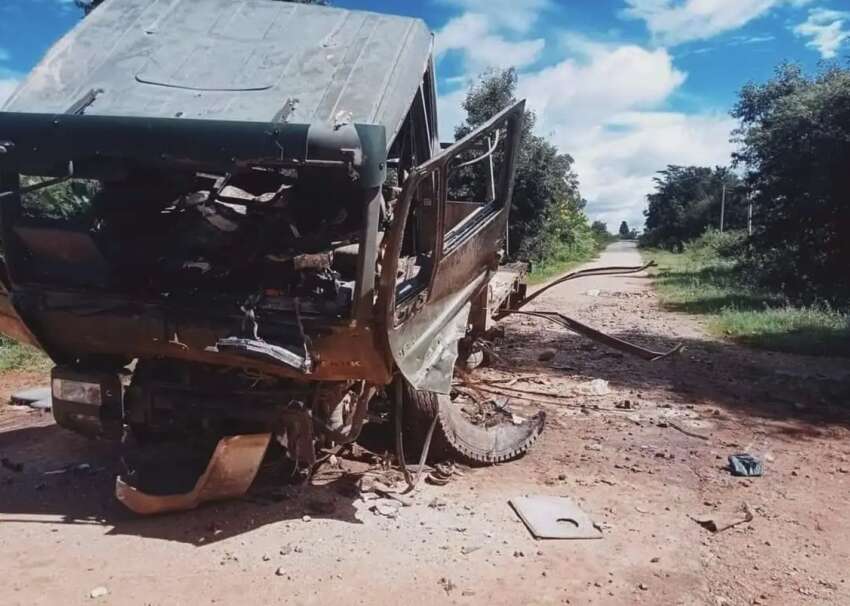 ဓာတ်ပုံ- ကရင်နီပြည်တွင် မိုင်းဆွဲခံထားရသော စစ်ကား ၁ စီး။ (ပုံအဟောင်းကို အသုံးပြုထားပါသည်။)