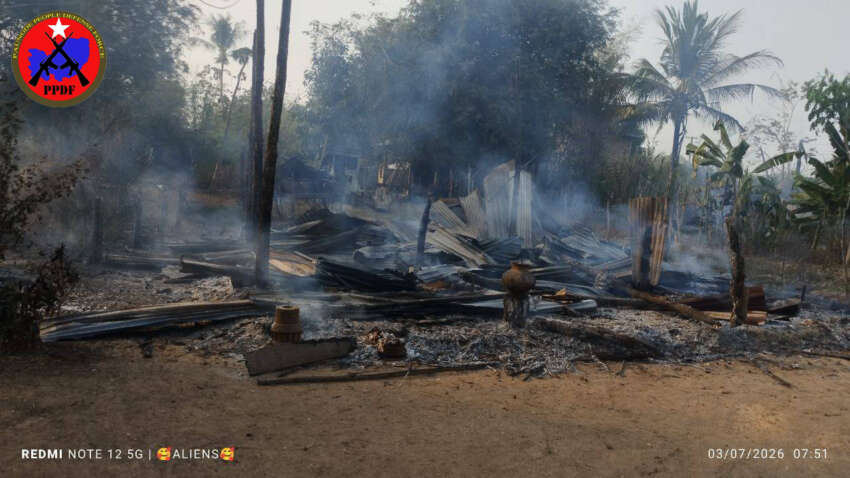 “အဲစစ်ခွေးစစ်ကြောင်းက ဒီနေ့ မနက် ၄ နာရီမှာ စစ်ကြောင်းထပ်ထိုးလာပြီး သဲမဲရွာကို မီးဝင်ရှို့သွားတယ်။ အိမ်ခြေ ၃၂ လုံးပြာကျသွားတယ်” ဟု ရဲဘော် Shadow က ဆက်လက် ပြောဆိုသည်။