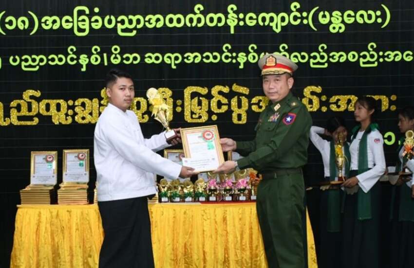 ဓာတ်ပုံ- ယမန်နှစ် အလယ်ပိုင်းတိုင်းတိုင်းမှူး ဗိုလ်မှူးချုပ် တင်မင်းလတ် တက်ရောက်ခဲ့သော နန်းတွင်း အမှတ် ၁၈ အထက်တန်းကျောင်း၏ ဆုပေးပွဲ။