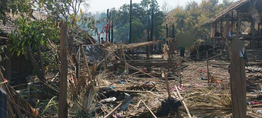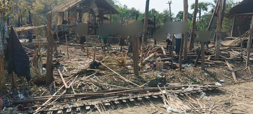 ဓာတ်ပုံ = ထီးလင်းမြို့နယ်အတွင်းရှိ ကျေးရွာတစ်ရွာကို စစ်တပ်က ဗုံးကျဲတိုက်ခိုက်မှုကြောင့် သေ ဆုံးထိခိုက်ပျက်စီးမှုများ