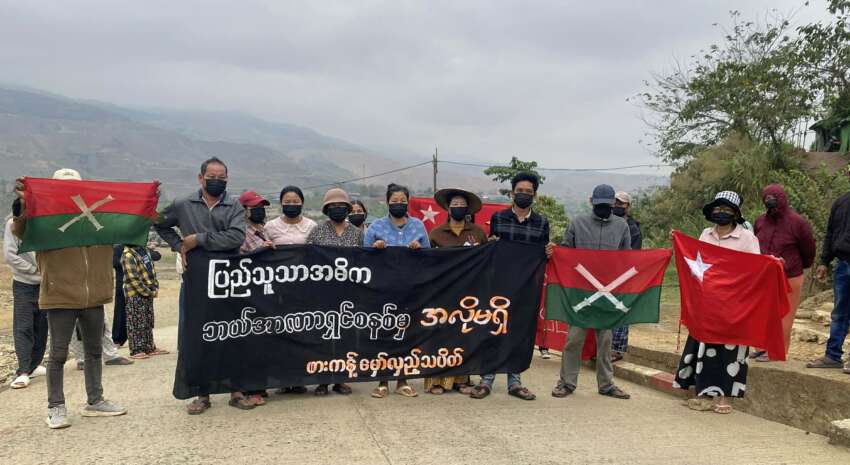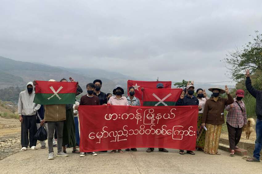 ကချင်ပြည်နယ်၊ ဖားကန့်မြို့တွင် စစ်ရာဇဝတ်ကောင် မင်းအောင်လှိုင်၏ တရားမဝင် လွှတ်တော်နှင့် မင်းအောင်လှိုင် ဖွဲ့စည်းမည့် တရားမဝင်အစိုးရကို ဆန့်ကျင်ကန့်ကွက် ဆန္ဒပြခဲ့ကြောင်း သိရသည်။