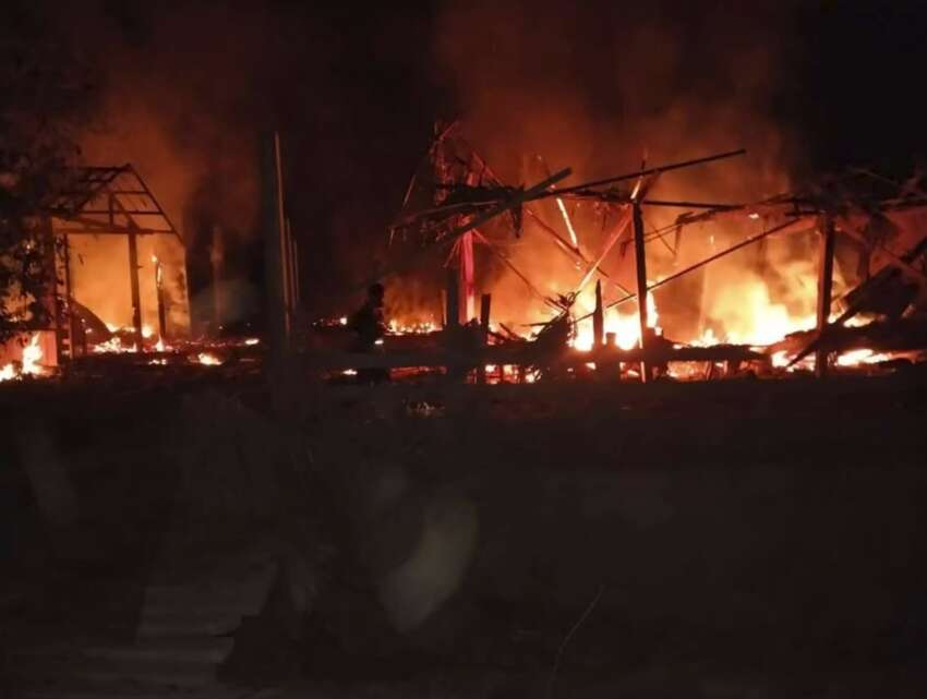 ဓာတ်ပုံ- စစ်တပ်၏ လေကြောင်းတိုက်ခိုက်မှုကြောင့် မီးလောင်ကျွမ်းနေသော ပြည်သူ့များ၏ နေအိမ်တချို့။ (ပုံအဟောင်းကို အသုံးပြုထားပါသည်။)
