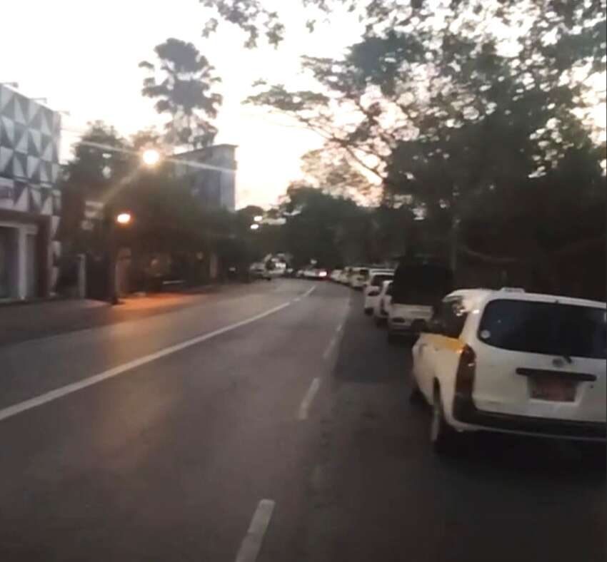 ဓာတ်ပုံ- ယနေ့ နံနက်ပိုင်း ရန်ကုန် စက်သုံးဆီဆိုင်များတွင် ကားများ ကြိတ်ကြိတ်တိုး တန်းစီနေစဉ်။