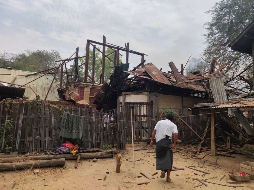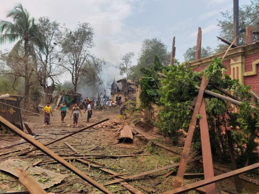 ယနေ့ မတ်လ ၂၀ ရက်နေ့ နံနက် ၁၁ နာရီကျော်ခန့်တွင် အကြမ်းဖက် စစ်တပ်၏ တံတားဦးလေတပ်မှ တက်လာသော ဂျက်ဖိုက်တာ ၁ စီးသည် ၂ ကြိမ် ဗုံးကျဲ တိုက်ခိုက်ခဲ့ကြောင်း၊ ထို တိုက်ခိုက်မှုအတွင်း ပြည်သူများ ထိခိုက်မှုရှိပြီး အရေအတွက်ကို အတည်ပြုနိုင်ခြင်းမရှိသေးဘဲ နေအိမ် ၅ လုံးထက်မနည်း ပျက်စီးခဲ့ကြောင်း သိရသည်။