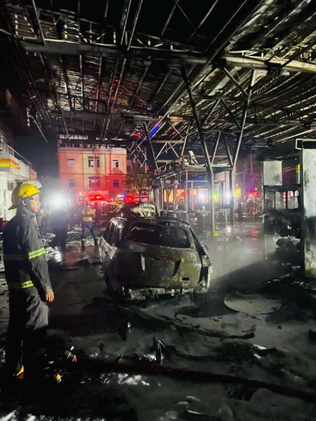 ယမန်နေ့ ည ၉ နာရီ ၃၉ မိနစ်အချိန်၊ဒဂုံမြို့သစ်မြောက်ပိုင်းမြို့နယ်၊ ၃၈ ရပ်ကွက်၊ ပြည်ထောင်စုလမ်းမပေါ်ရှိ ၇/၈ လမ်းဆုံအနီးရှိ Terminal စက်သုံးဆီအရောင်းဆိုင်တွင် ဆီလာထည့်သည့် ပရိုဘောက်စ် ကားမီးလောင်ကျွမ်းခဲ့ရာမှ မီးကူးစက်ခဲ့ပြီး အခြားဆီလာထည့်သော ကားတချို့မှာလည်း မီးလောင် ပြာကျသွားကြောင်း သိရှိရသည်။