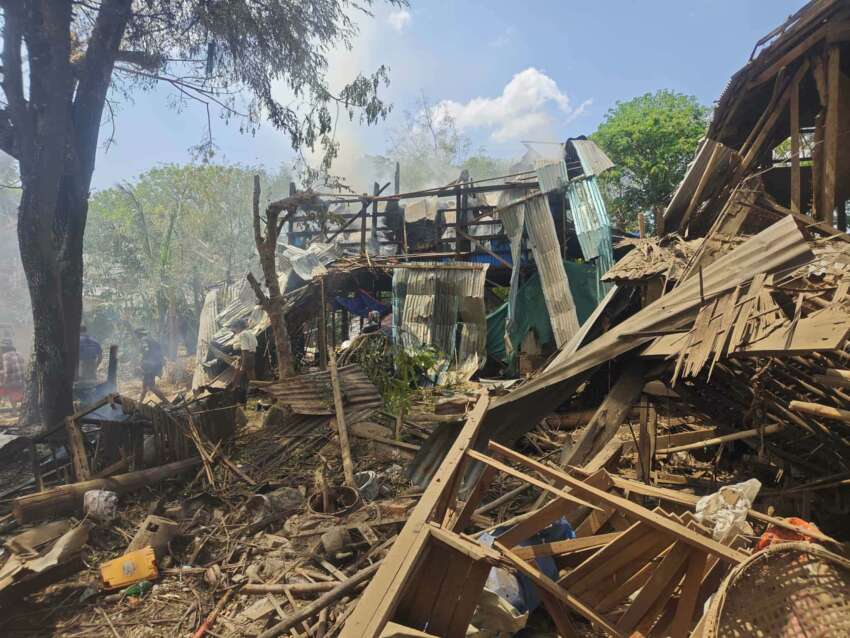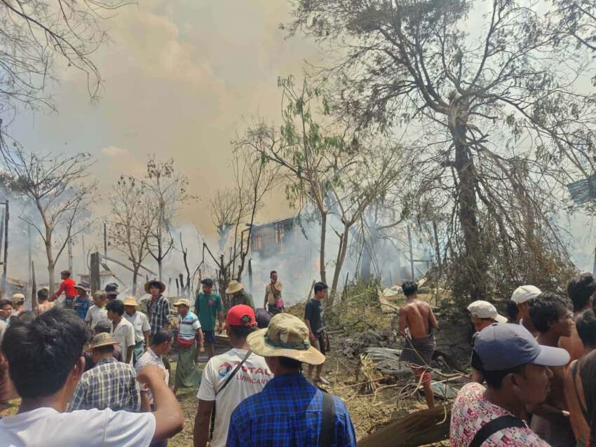 အကြမ်းဖက် စစ်တပ်၏ လေယာဉ်ဖြင့် ဗုံးကျဲ တိုက်ခိုက်မှုအတွင်း နေအိမ် အများအပြားလည်း မီးလောင်ပြာကျခဲ့ကြောင်း၊ ကျေးရွာနေပြည်သူများသည်လည်း ဘေးလွတ်ရာ ထွက်ပြေးတိမ်းရှောင်နေရကြောင်း၊ အလားတူ မတ်လ ၂၀ ရက်နေ့ကလည်း တံတားဦးလေတပ်မှ တက်လာသော ဂျက်ဖိုက်တာ ၁ စီးက မြောင်မြို့နယ်အတွင်းရှိ နဘက်စံပြကျေးရွာကို ဗုံးကျဲတိုက်ခိုက်ခဲ့ပြီး ပြည်သူ ၂ ဦးသေဆုံးခဲ့ကြောင်း သိရသည်။