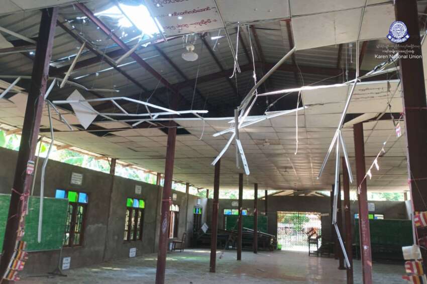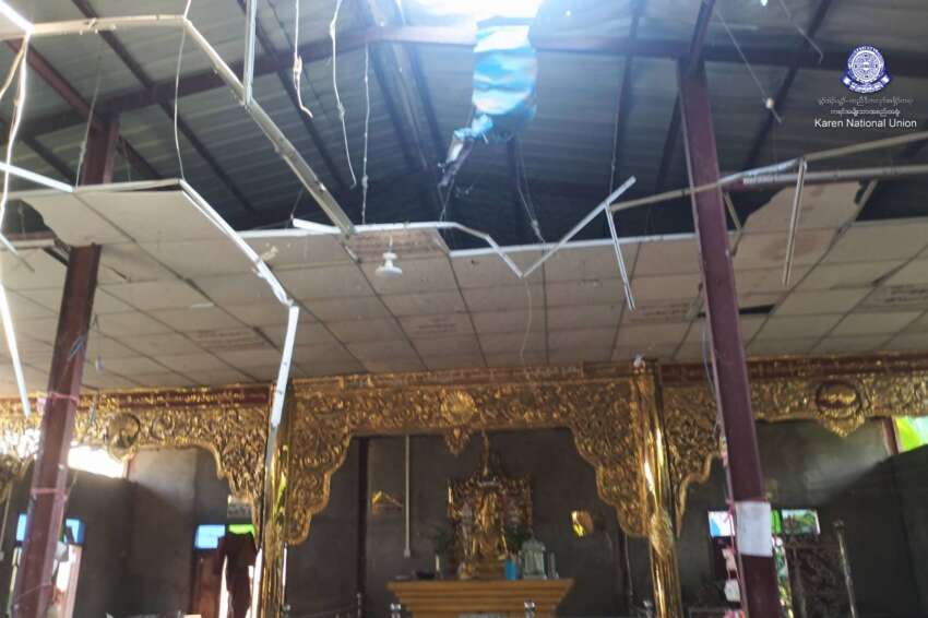 ပဲခူးတိုင်း၊ မုန်းမြို့နယ်ရှိ နိုဘိုးခီးရွာ ဘုန်းကြီးကျောင်းကို အကြမ်းဖက် စစ်တပ်က အသေခံဒရုန်းဖြင့် တိုက်ခိုက်ခဲ့သောကြောင့် ကျောင်းဆောင်များ ပျက်စီးခဲ့ကြောင်း KNU ဗဟိုက ထုတ်ပြန်ထားသည်။