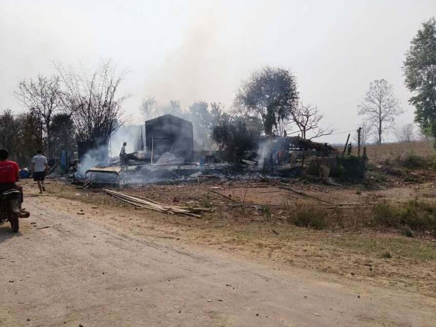 ယနေ့ မတ်လ ၂၆ ရက်နေ့ နံနက် ၁၁ နာရီကျော်ခန့်မှ စတင်ပြီး မွန်း ၃ နာရီခန့်အထိ အကြမ်းဖက် စစ်တပ်၏ မိတ္ထီလာ ရှမ်းတဲ လေတပ်နှင့် တံတားဦး လေတပ်မှ တက်လာသော ဂျက်ဖိုက်တာ ၃ စီးသည် ဂေါင်းစမရွာနှင့် သစ်ရအိုက်ရွာ အနီးတို့ကို ၆ ကြိမ် ဗုံးကျဲ တိုက်ခိုက်ခဲ့ခြင်းဖြစ်ကြောင်း သိရသည်။