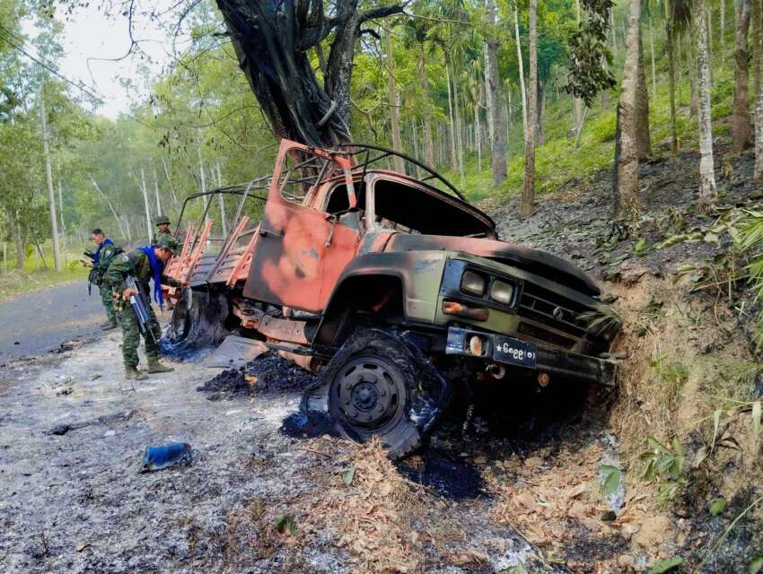 ဓာတ်ပုံ- စစ်တပ်စစ်ကြောင်းကို KNLA နှင့် တော်လှန်ရေးတပ်ဖွဲ့များက တိုက်ခိုက်ခဲ့စဉ်။ (ပုံအဟောင်းကို အသုံးပြုထားပါသည်။)