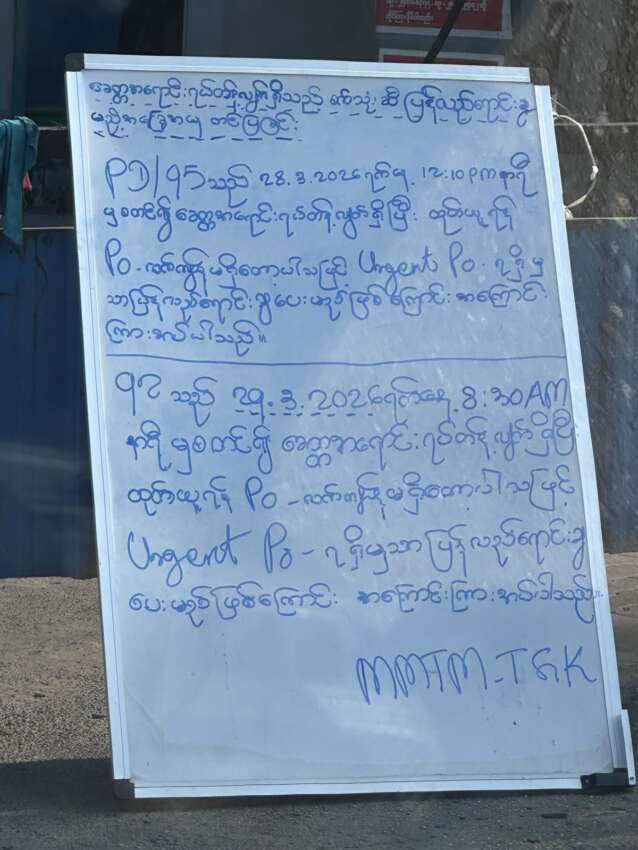 ရန်ကုန်ရှိ တစ်ပိုင်တစ်နိုင် စက်သုံးဆီဆိုင်ငယ်များမှာ သွင်းကုန်လုပ်ငန်းရှင် (Importer) များထံမှ ဆီထုတ်ယူ၍ မရတော့သဖြင့် ရှိသမျှလက်ကျန်ဆီကိုသာ QR Scan ဖတ်၍ ရောင်းချပေးနေရသည်။