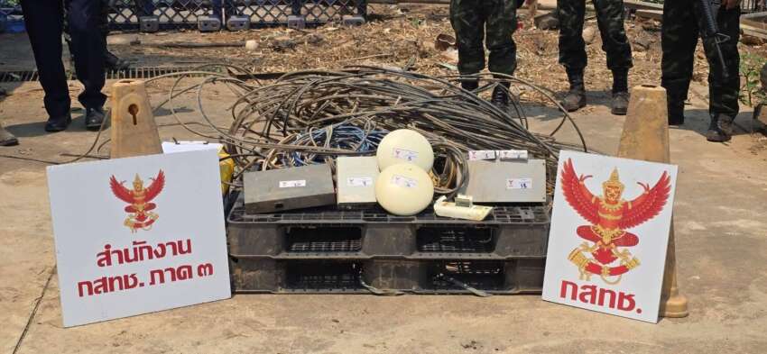 ထိုင်း-မြန်မာနယ်စပ်၊ မဲဆောက်မြို့တွင် မြန်မာဘက်သို့ အင်တာနက်လိုင်း တရားမဝင် ပေးပို့နေမှုကို ဝင်ရောက်ဖမ်းဆီးပြီး ဆက်သွယ်ရေးစက်ပစ္စည်းများကို သိမ်းဆည်း