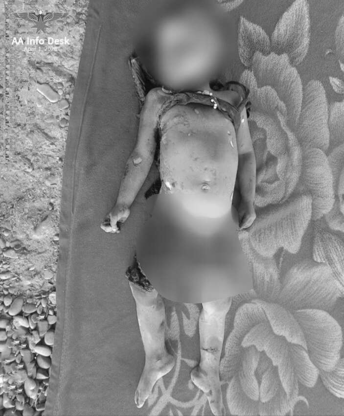 ရခိုင်ပြည်၊ သံတွဲမြိုနယ်ကို စစ်တပ်က တိုကလေယာဉ် ၄ စီးဖြင့် ဗုံးကျဲတိုက်ခိုက်မှု အသက် ၂ နှစ်နှင့် ၇ နှစ်အရွယ် ကလေး ၂ ဦး အပါအဝင် ပြည်သူ ၄ ဦးပါသည့် မိသားစုတစ်စုလုံး သေဆုံးသွားကြောင်း AA က သတင်းထုတ်ပြန်သည်။