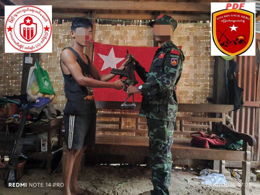 “ကြို့ပင်ကောက်မြို့နယ်ထဲက ရဲကင်းစခန်းကနေ ထွက်ပြေးလာတဲ့ စစ်မှုထမ်း တပ်သားသစ် ၂ ဦး အလင်းဝင်ရောက်လာတာပါ။ သူတို့ နွေးထွေးစွာ ကြိုဆိုပြီးတော့ ဆုငွေတွေ ချီးမြှင့်ထားပါတယ်” ဟု သာယာဝတီခရိုင် ၃၈၀၁ တပ်ရင်း တပ်ခွဲ (၅) ကြို့ပင်ကောက် Hero ပြောက်ကျားတပ်ဖွဲ့မှ တာဝန်ရှိသူက ပြောဆိုသည်။