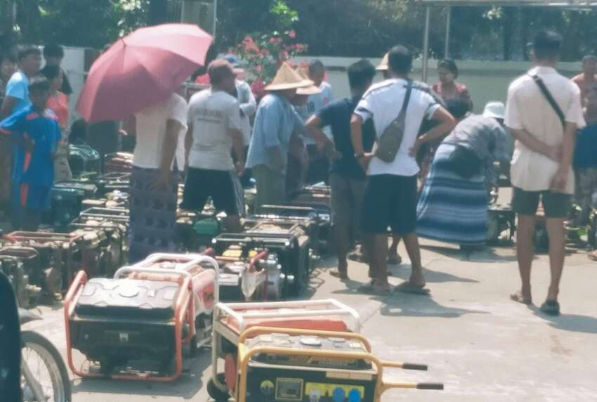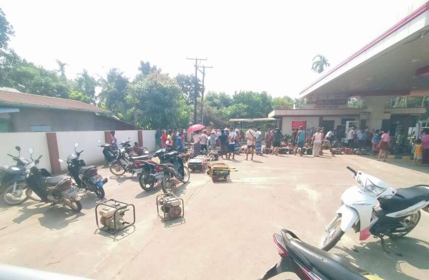 ဓာတ်ပုံ-မွန်ပြည်နယ်၊ပေါင်မြို့နယ်မှာ စက်သုံးဆီဝယ်ယူရန် တောင်သူများက ရေတင်စက်များကို ဆီဆိုင်အထိ ယူဆောင်လာ၍ တန်းစီးနေရစဉ်။