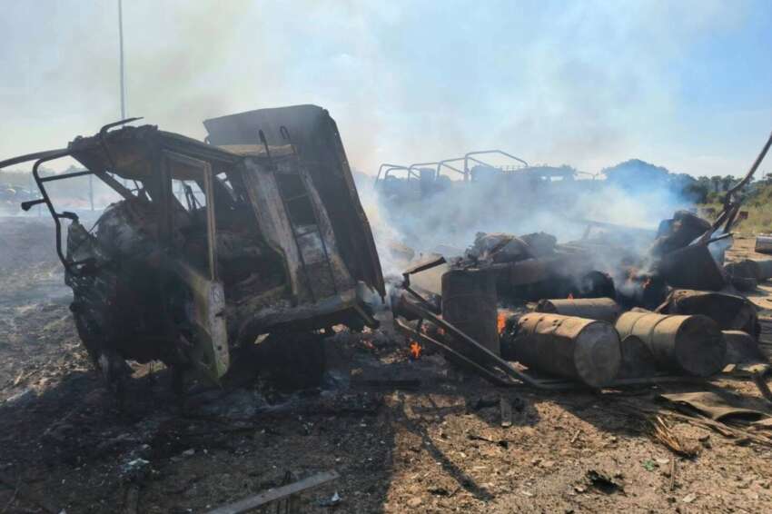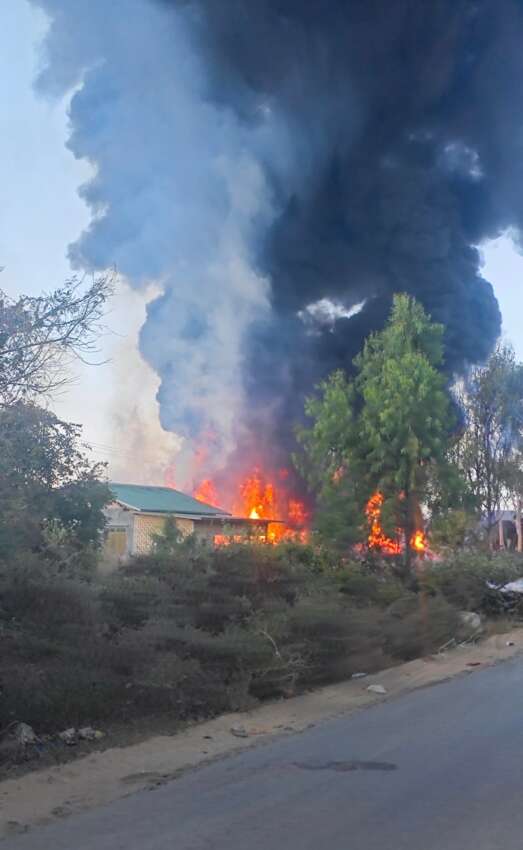 ဓာတ်ပုံ- စစ်ကိုင်းတိုင်း၊ ခင်ဦးမြို့နယ်တွင် ၂၀၂၅ ခုနှစ် ဒီဇင်ဘာလအတွင်း စစ်တပ်၏ လေကြောင်းတိုက်ခိုက်မှုကြောင့် မီးလောင်ပျက်စီးမှုများကို တွေ့ရစဉ်။