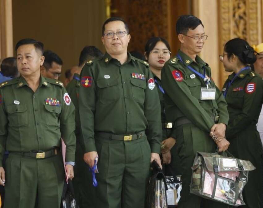 ဓာတ်ပုံ- လွှတ်တော်တက်ရောက်နေသည့် စစ်တပ်ဘက်မှ ဒုဗိုလ်မှူးကြီး၊ ဗိုလ်မှူးများအပါအဝင် စစ်အရာရှိများ။