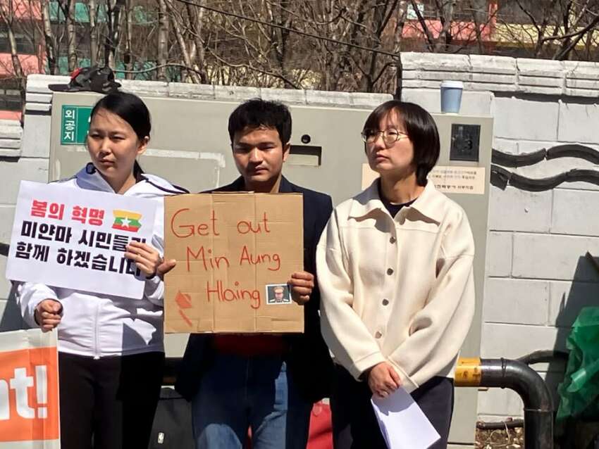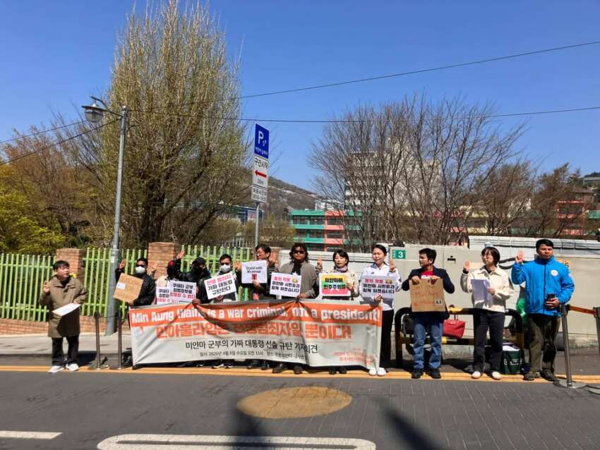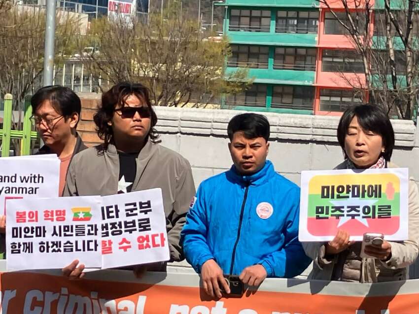 တောင်ကိုရီးယားနိုင်ငံ၊ ဆိုးလ်မြို့ရှိ မြန်မာသံရုံးရှေ့တွင် အကြမ်းဖက် မြန်မာစစ်အုပ်စုက အတုအယောင် ရွေးကောက်ပွဲဖြင့် အရေခွံခြုံ အရပ်သားအစိုးရ အသွင်သဏ္ဌာန်ဖန်တီးကာ စစ်အစိုးရ အာဏာတည်မြဲရေး ကြိုးပမ်းမှုများကို ပြင်းပြင်းထန်ထန် ကန့်ကွက်ရှုတ်ချသည့် သတင်းစာရှင်းလင်းပွဲကို ဧပြီလ ၇ ရက်နေ့ နံနက် ၁၁ နာရီခန့်တွင် ပြုလုပ်ခဲ့ကြောင်း သိရသည်။