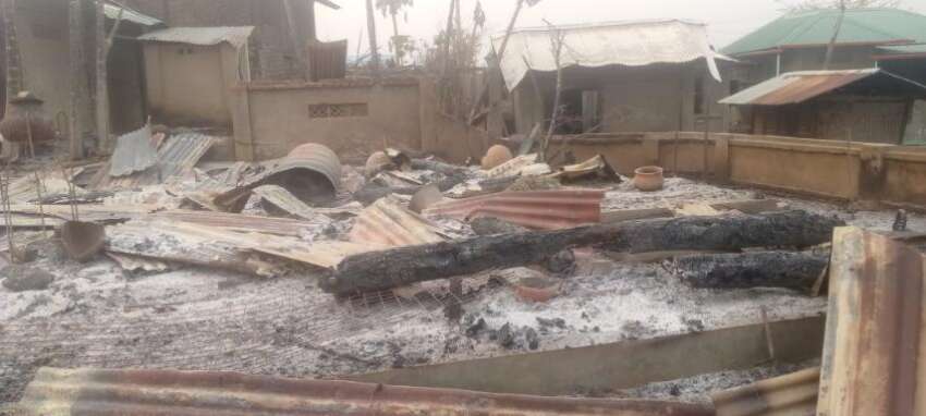 ဓာတ်ပုံ – အကြမ်းဖက် စစ်တပ် မီးရှို့ဖျက်ဆီးခဲ့သော တောင်သာမြို့နယ်၊ ပန်းပေါင်းရွာ