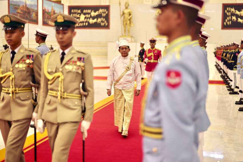 ယမန်နေ့ အကြမ်းဖက် လွှတ်တော်တွင် စကားပြောအပြီး သမ္မတအိမ်တော်တွင် အကြမ်း ဖက် မင်းအောင်လှိုင်က ဒုတိယအကြိမ် စကားထပ်ပြောစဉ် ယင်းကဲ့သို့ ပြောဆိုလာခြင်းဖြစ်သည်။