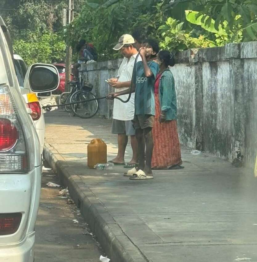 ဓာတ်ပုံ- ရန်ကုန်တွင် ဆီထုတ်ယူ ရောင်းချနေကြသူများကို ယခင် မတ်လအတွင်း မြင်တွေ့ရစဉ်။