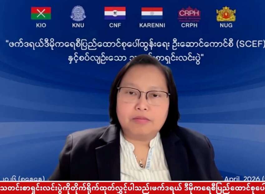 ယမန်နေ့ ဧပြီ ၁၁ ရက် ည ၇ နာရီက ပြုလုပ်ခဲ့သည့် ဖက်ဒရယ် ဒီမိုကရေစီ ပြည်ထောင်စုပေါ်ထွန်း ရေး ဦးဆောင်ကောင်စီ -SCEF ၏ သတင်းစာရှင်းလင်းပွဲမှာ တွင် တာဝန်ရှိသူများက ထည့်သွင်းပြော ဆိုခဲ့ခြင်းဖြစ်သည်။