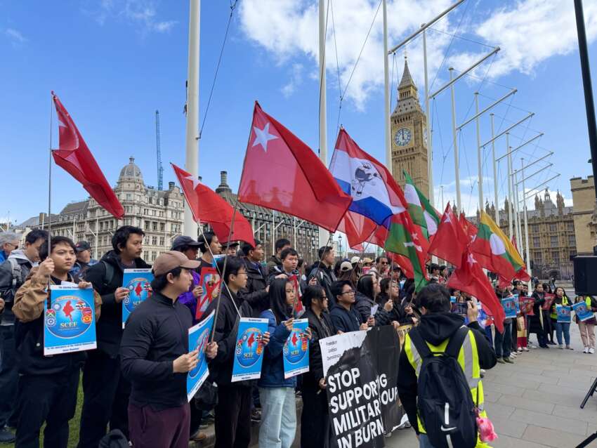 လန်ဒန်မြို့ ပါလီမန်ရှေ့တွင် ယူကေရောက် တိုင်းရင်းသားပြည်သူများ စုပေါင် း၍ စစ်ကောင်စီ၏ အတုအယောင် ရွေးကောက်ပွဲ နှင့် လွှတ်တော်တို့မှ ဖွဲ့စည်းလိုက်သော တရားမဝင် အစိုးရအား ကန့်ကွက်ရှုတ်ချကြောင်းနှင့် ERO တိုင်းရင်းသားအဖွဲ့ အစည်းများနှင့် CRPH + NUG တို့ပူးပေါင်းဖွဲ့စည်း လိုက်သည့် ဖယ်ဒရယ်ဒီမိုကရေစီပြည်ထောင်စုပေါ်ပေါက်ရေး ဦးဆောင်ကောင်စီအား ထောက်ခံကြိုဆိုပွဲ ကိုကျင်းပခဲ့ကြောင်း သိရသည်။