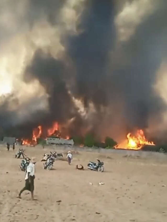“ဘုန်းကြီးကျောင်းမှာ တပ်စွဲထားတဲ့ စစ်ခွေးတွေက မီးရှို့တာ အခုပြောနေတဲ့ တောမီးလောင်စရာဘာအကြောင်းမှမရှိဘူး။ သူတို့ တပ်စွဲထားတဲ့ ဘက်ကျတော့မလောင်ဘူး ပြည်သူတွေ နေအိမ် အများစုရှိတဲ့ဘက်လောင်းသွားတာ အထက်တန်းကျောင်းတောင် မီးလောင်ပြာကျသွားတယ်။ မီးသတ်ကို ဖုန်းဆက်ကျတယ်လို့တော့ ပြောတယ်။ မီးလာမငြိမ်းဘူး သူတို့ခွင့်ပြုချက်လိုတယ်လို့ပြောပြီး ဖုန်းချသွားတယ်လို့ ဆက်တဲ့ သူတွေ ပြောပြချက်အရ သိရပါတယ်။ ရွာကတော့ နေအိမ် ၅၀၀ ခန့်ပြာကျသွားတယ်။ ရွာလုံးကျွတ် နီးပါးကို လောင်သွားတာ” ဟု ဒေသပြည်သူတစ်ဦးက ပြောဆိုသည်။