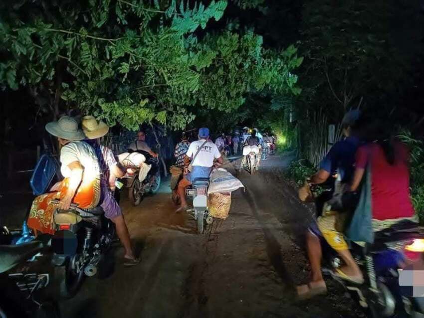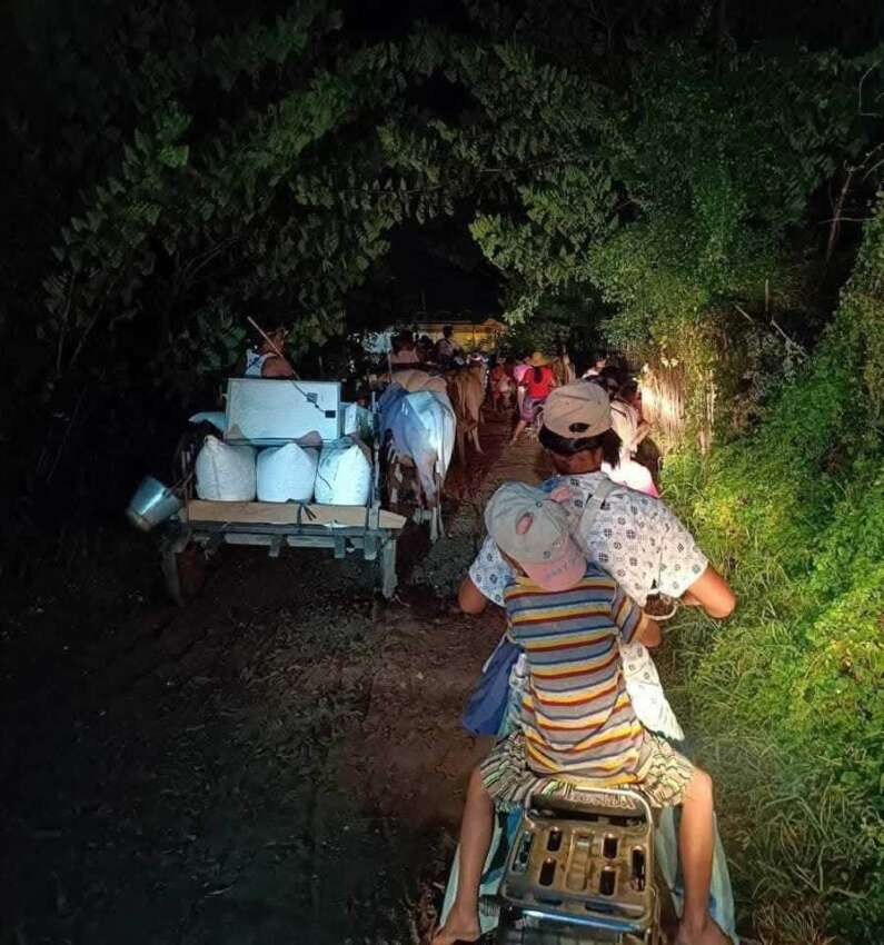 ဓာတ်ပုံ – စစ်ကိုင်းတိုင်းအတွင်းရှိ ကျေးရွာတစ်ခုကို စစ်တပ် စစ်ကြောင်းက ညအချိန်ဝင်ရောက်လာသောကြောင့် ထွက်ပြေးတိမ်းရှောင်နေရသော ပြည်သူများ (ပုံအဟောင်းဖြစ်သည်)