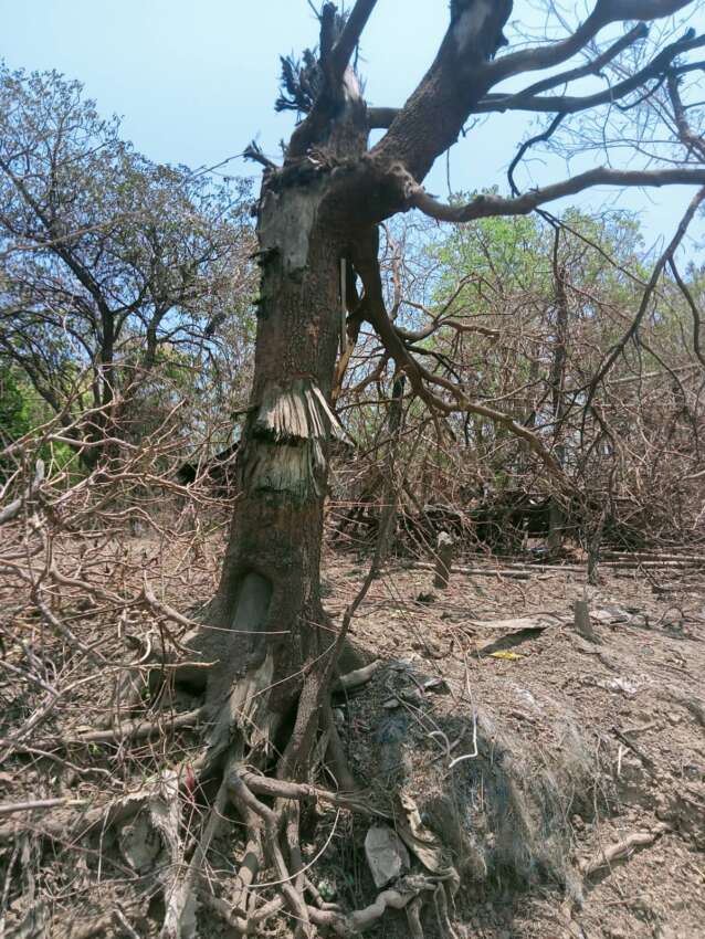 နတ်တလင်းမြို့နယ်တွင် အကြမ်းဖက် စစ်တပ် စစ်ကြောင်းက ဧပြီလ ၈ ရက်နေ့တွင် ကျွန်းလေးပင်ရွာမှ နေအိမ် ၂၅ လုံး၊ ဧပြီလ ၉ ရက်နေ့တွင် ကျောက်ခွက်ရွာမှ နေအိမ် ၃၀ ကျော်၊ ဧပြီလ ၁၁ ရက်နေ့နှင့် ၁၂ ရက်နေ့တွင် ဘန့်ဘွေးကုန်းကျေးရွာမှ နေအိမ် ၂၀၀ ကျော်တို့ မီးလောင်ပြာကျခဲ့ပြီး ယမန်နေ့ ဧပြီလ ၁၃ ရက်နေ့ ညနေ ၅ နာရီခန့်ကလည်း မကျီးပင်ရွာကို ဆက်လက် မီးရှို့နေကြောင်း သိရှိရသည်။