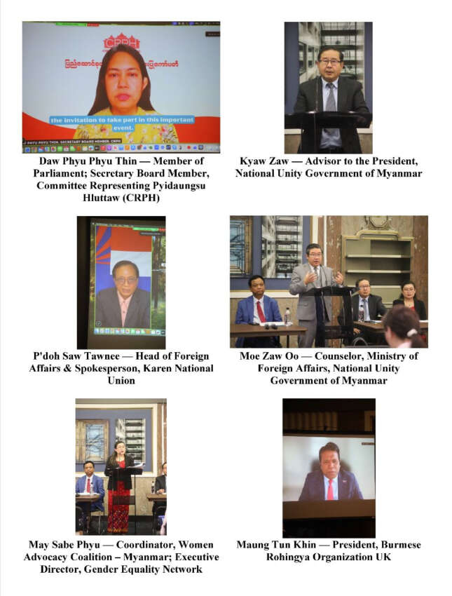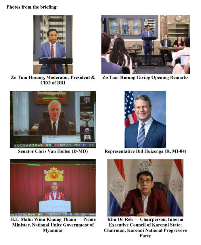 မြန်မာ့အရေး ၇ ကြိမ်မြောက် အမေရိကန်ကွန်ဂရက်လွှတ်တော်ဆိုင်ရာ ရှင်းလင်းတင်ပြပွဲကို အမေရိကန်ပြည်ထောင်စု၊ ဝါရှင်တန်ဒီစီတွင် ယနေ့ ကျင်းပပြီး NUG ၊ KNU အပါ အဝင် တိုင်းရင်းသားများနှင့်တော်လှန်ရေးအင်အားစုများ တက်ရောက်ကြကြောင်း အဆိုပါပွဲကို စီစဉ်သော်မြန်မာနိုင်ငံသုတေသနအဖွဲ့ (Burma Research Institute – BRI) က သတင်း ထုတ်ပြန်သည်။