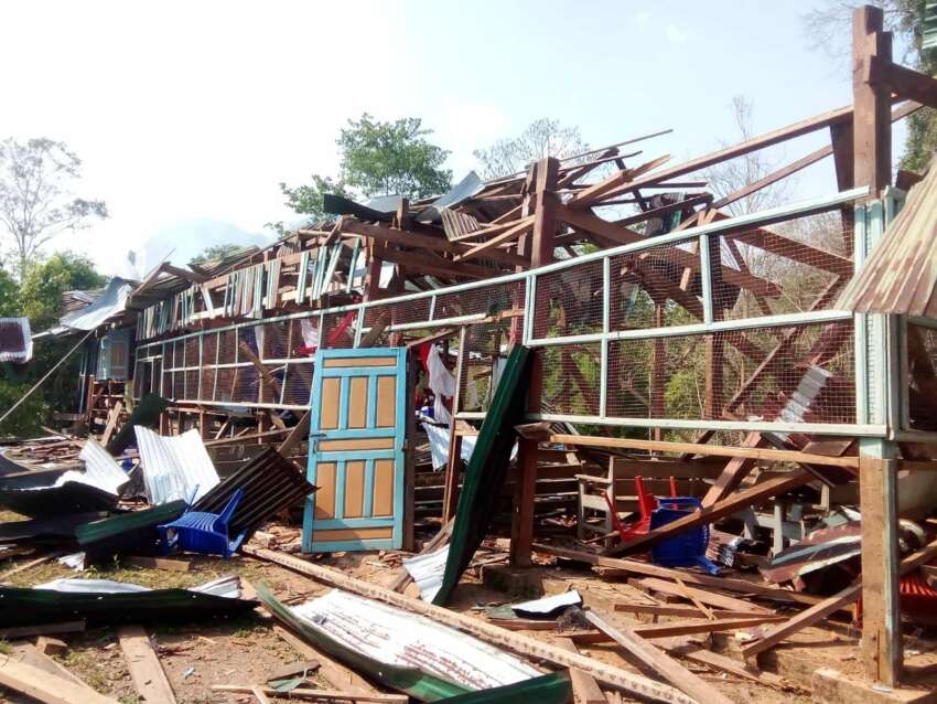 အကြမ်းဖက် စစ်တပ်သည် ဂျက်ဖိုက်တာဖြင့် ဗုံးကျဲ တိုက်ခိုက်ပြီးနောက် Y-12 လေယာဉ်ဖြင့် ဗုံးများ လိုက်လံ ကျဲချတိုက်ခိုက်ခဲ့ခြင်းဖြစ်ကြောင်း၊ အလားတူ ဧပြီလ ၁၄ ရက်နေ့ကလည်း အကြမ်းဖက် စစ်တပ်က လေကြောင်းဖြင့်ဗုံးကျဲ တိုက်ခိုက်ခြင်းကြောင့် မူတြော်အခြေခံအဆင့်မြင့်ကောလိပ် (Mutraw Junior College – MTJC) ဝင်းအတွင်းရှိ ကျောင်းဆောင်များစွာ ပြင်းထန်စွာ ပျက်စီးဆုံးရှုံးခဲ့ကြောင်း သိရှိရသည်။